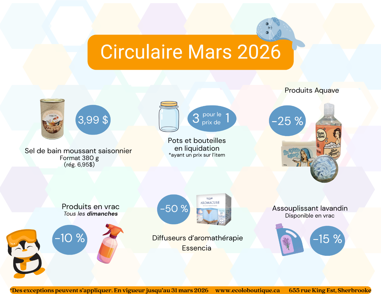 Notez que les livraisons locales (ville de Sherbrooke) et les livraisons dans les points de chute se feront seulement les vendredis de chaque semaine!